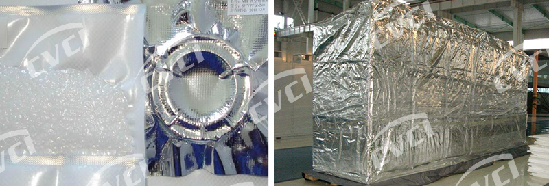 采用該產(chǎn)品包裝金屬制品后,可有效阻隔外界氧氣、水蒸氣、腐蝕性氣體、灰塵、陽光等進入包裝空間。在密封條件下可有效防止金屬銹蝕,并減緩橡膠、塑料等非金屬材料的老化變質(zhì),用于各種器材除氧、干燥、真空封存包裝,特別適用于電子、光學(xué)、儀表等精密器材的長期封存;也可用于大型設(shè)備、發(fā)動機、齒輪箱等大件器材的封套封存。